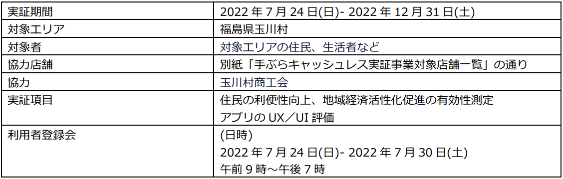 利用者は指静脈情報を事前登録することで、村内の協力店舗にて専用端末に手をかざすだけで玉川村の地域商品券の利用が可能です。利用者や協力店舗へアンケート等を実施し、そこで得られたデータの解析等により、本実証導入による住民の利便性向上や玉川村の地域経済活性化促進の効果を検証します。