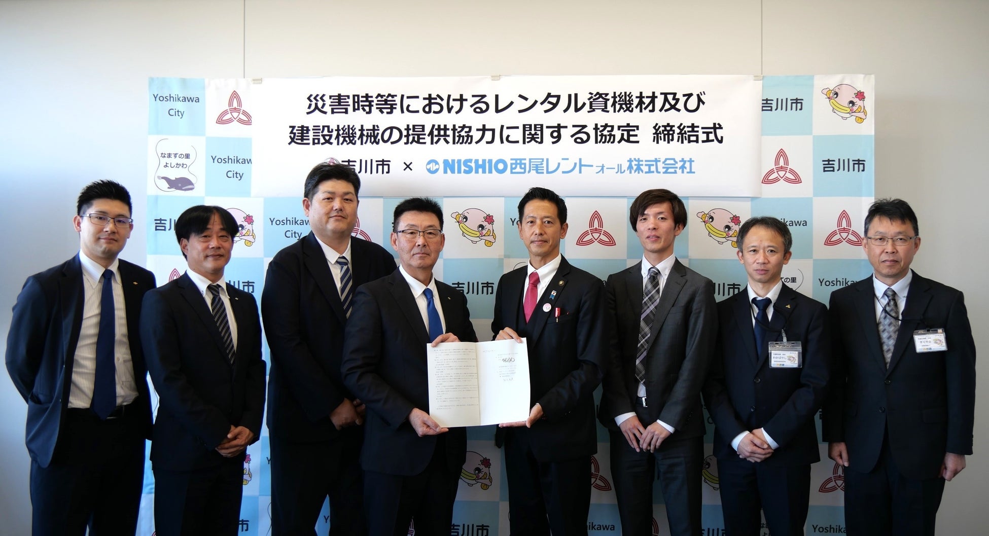 ニシオホールディングス株式会社傘下の西尾レントオール株式会社(本社:大阪府大阪市、代表取締役社長:西尾 公志)は、埼玉県吉川市(市長:中原 恵人)と、災害発生時に復旧作業等の遂行にあたり、必要な資機材を円滑に調達できる体制を整備することを目的とした「災害時等におけるレンタル資機材及び建設機械の提供協力に関する協定」を締結しました。