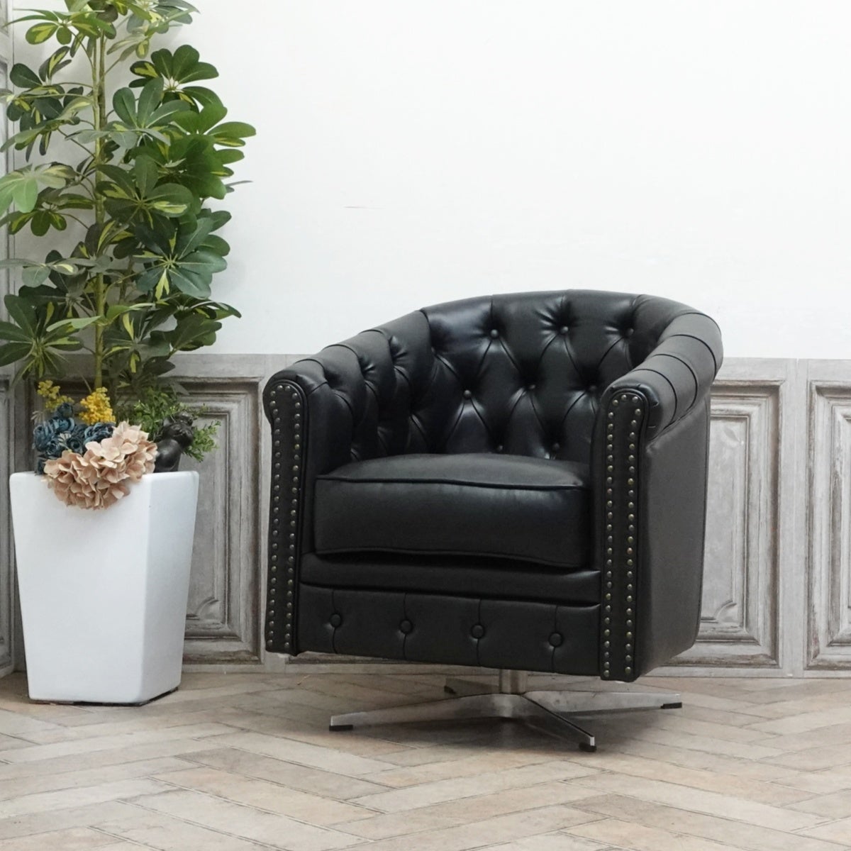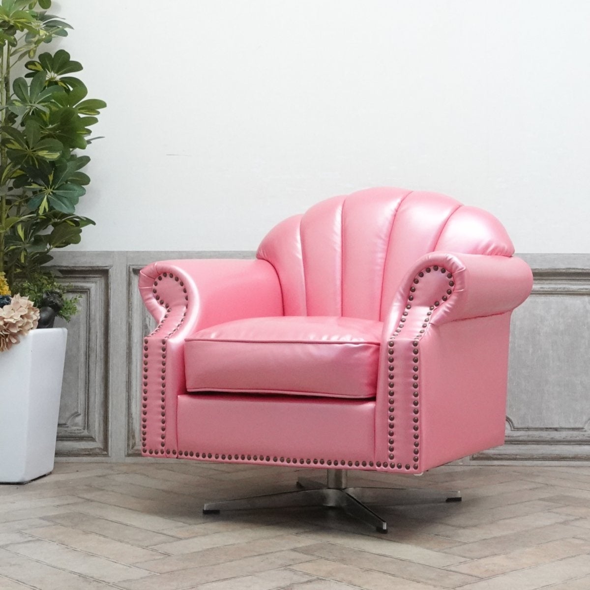 モダンなシルエットのシェルファとメタリックフットの相性はバツグン。
