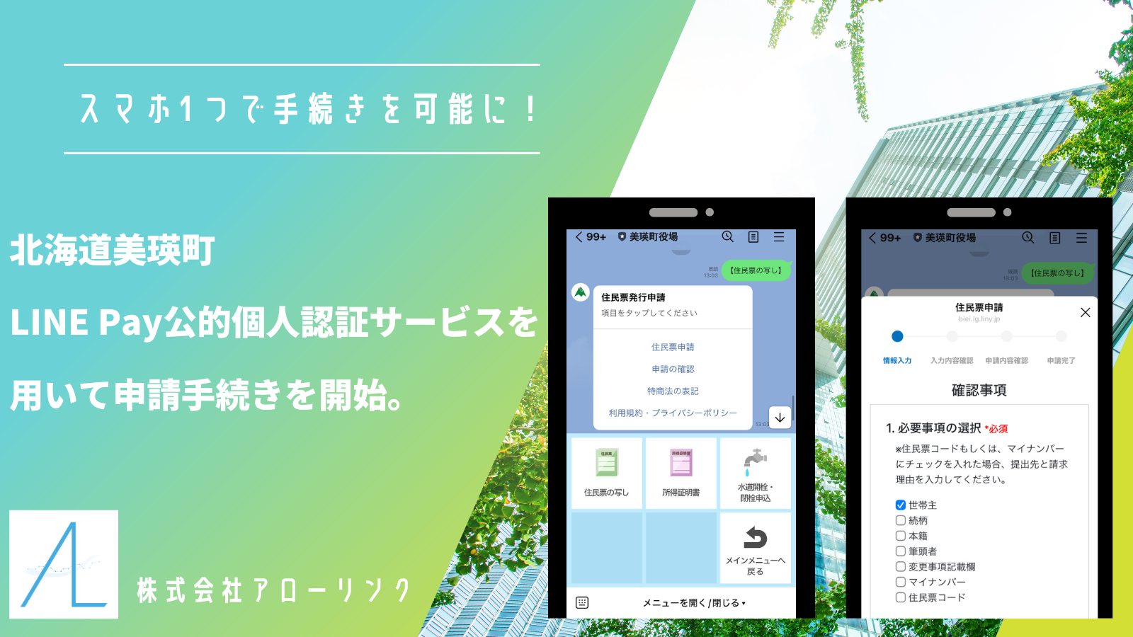 北海道美瑛町のLINE公式アカウント「持ち運べる役所」で、LINE Pay 公的個人認証サービスを用いた申請手続きを開始