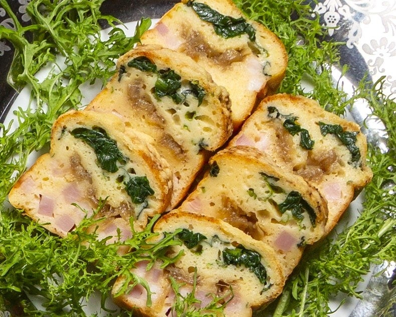 「西村シェフ特製ケークサレ」は、フランスで家庭料理として親しまれてきた伝統の“塩味ケーキ”。卵の旨みを生かしたふんわりとした生地に、ベーコン、きのこ、ほうれん草などの季節の野菜をふんだんに混ぜ込み、外は香ばしく中はしっとりと焼き上げました。ワインやシャンパンとの相性も良く前菜にもぴったり。クリスマスの食卓を華やかに彩る一品です。