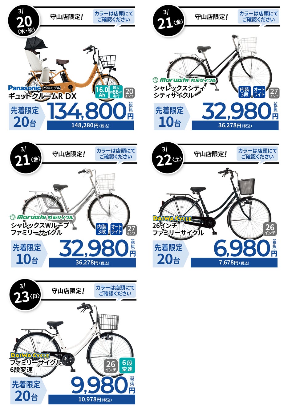 ~台数限定で自転車が7,678円!スーパーカネスエ守山店様と同日オープン!~