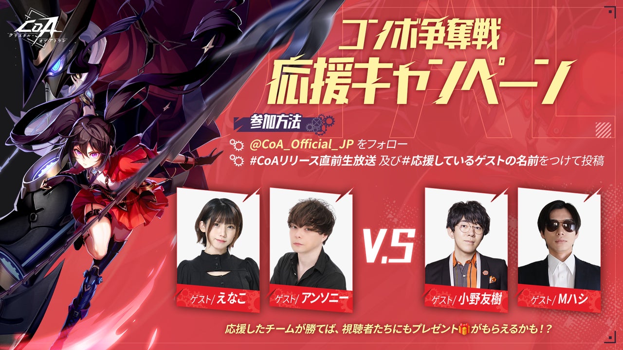 ②#CoAリリース直前生放送 + #応援しているゲストの名前 をつけて投稿