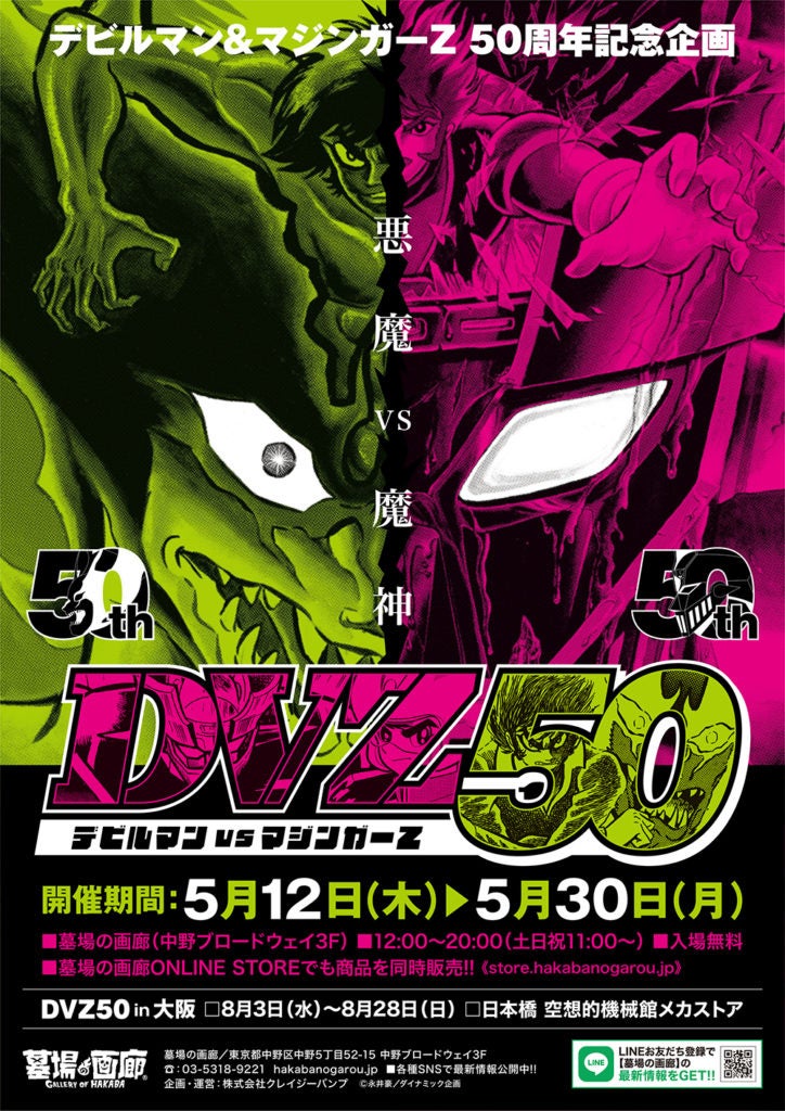 マンガ、アニメ、特撮などを始めとするサブカルチャーをテーマとした企画展を開催・運営している株式会社クレイジーバンプは『デビルマン』&『マジンガーZ』50周年特別企画【DVZ50】を5月12日(木)~5月30日(月)の期間で開催致します。(https://hakabanogarou.jp/archives/27547)