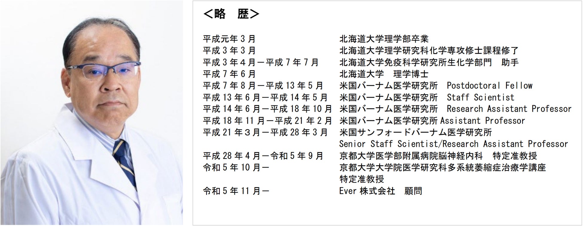 本共同研究では、当社が創製した化合物を用いて、京都大学の髙橋良輔特定教授とともに、神経変性疾患に対する薬効評価や作用機序の解明を行うことを目的としております。髙橋良輔特定教授は、神経変性疾患領域において豊富な臨床経験と研究実績を有しており、たとえば、「iPS細胞由来ドパミン神経前駆細胞を用いたパーキンソン病治療に関する医師主導治験」において治験責任医師を務めました。同治験では、安全性および有効性を示唆する研究成果が得られ、2025年4月にはその成果が国際的な学術誌「Nature」に掲載されました。これまでの対症療法とは異なる、治療という新たな選択肢の提供をめざします。