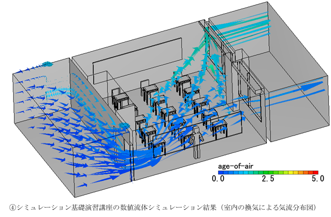 を用いて、室内での換気シミュレーションを行い、 空気の流れを可視化する技術についての演習を