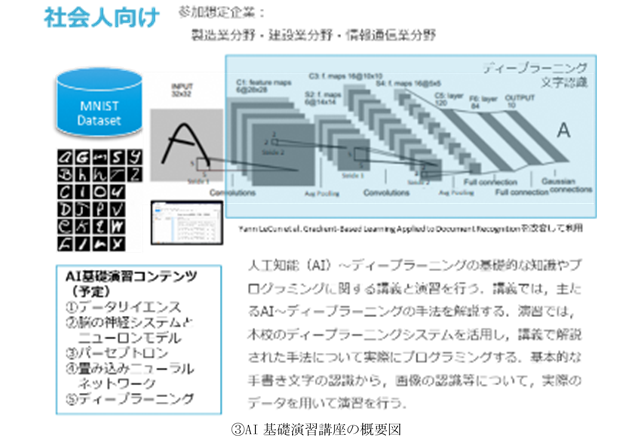 ステムを用い、文字認識から画像認識等の演習を通してAI の基礎的な知識を学びます。