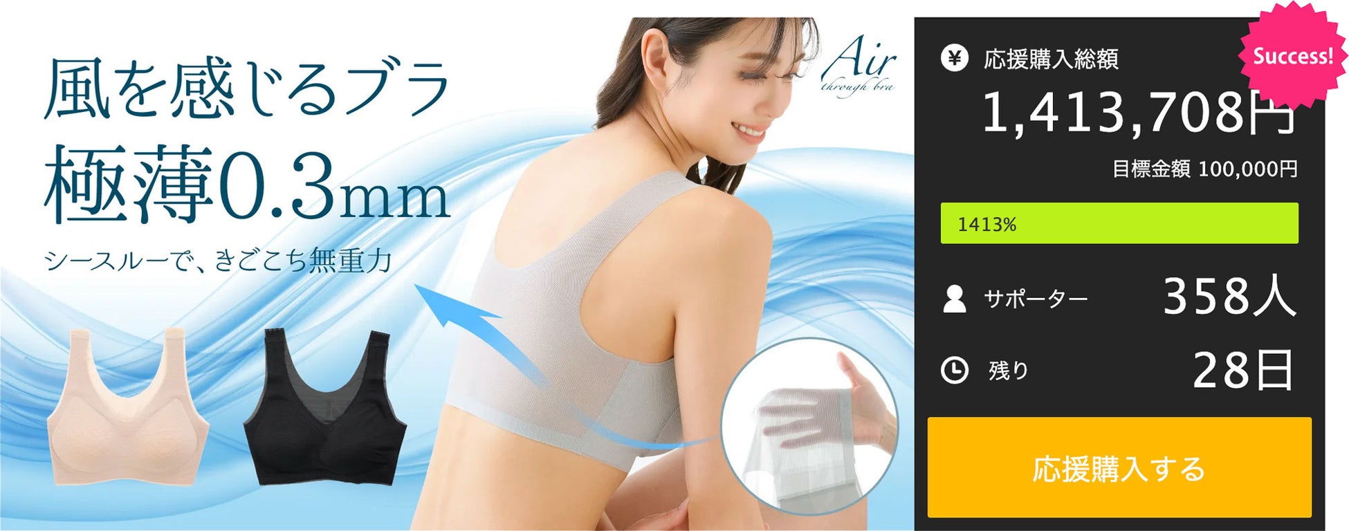 暑さからの解放!ムレない!締め付けない!ひびかない!女性が考えた女性の為のブラ!「極薄エアースルーブラ」Makuake(マクアケ)にて1400%越え達成!