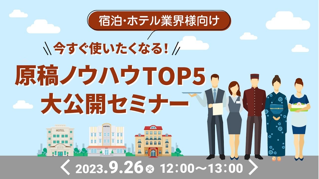 ~宿泊・ホテル業界様向け~ 今すぐ使いたくなる!原稿ノウハウTOP5大公開セミナー
