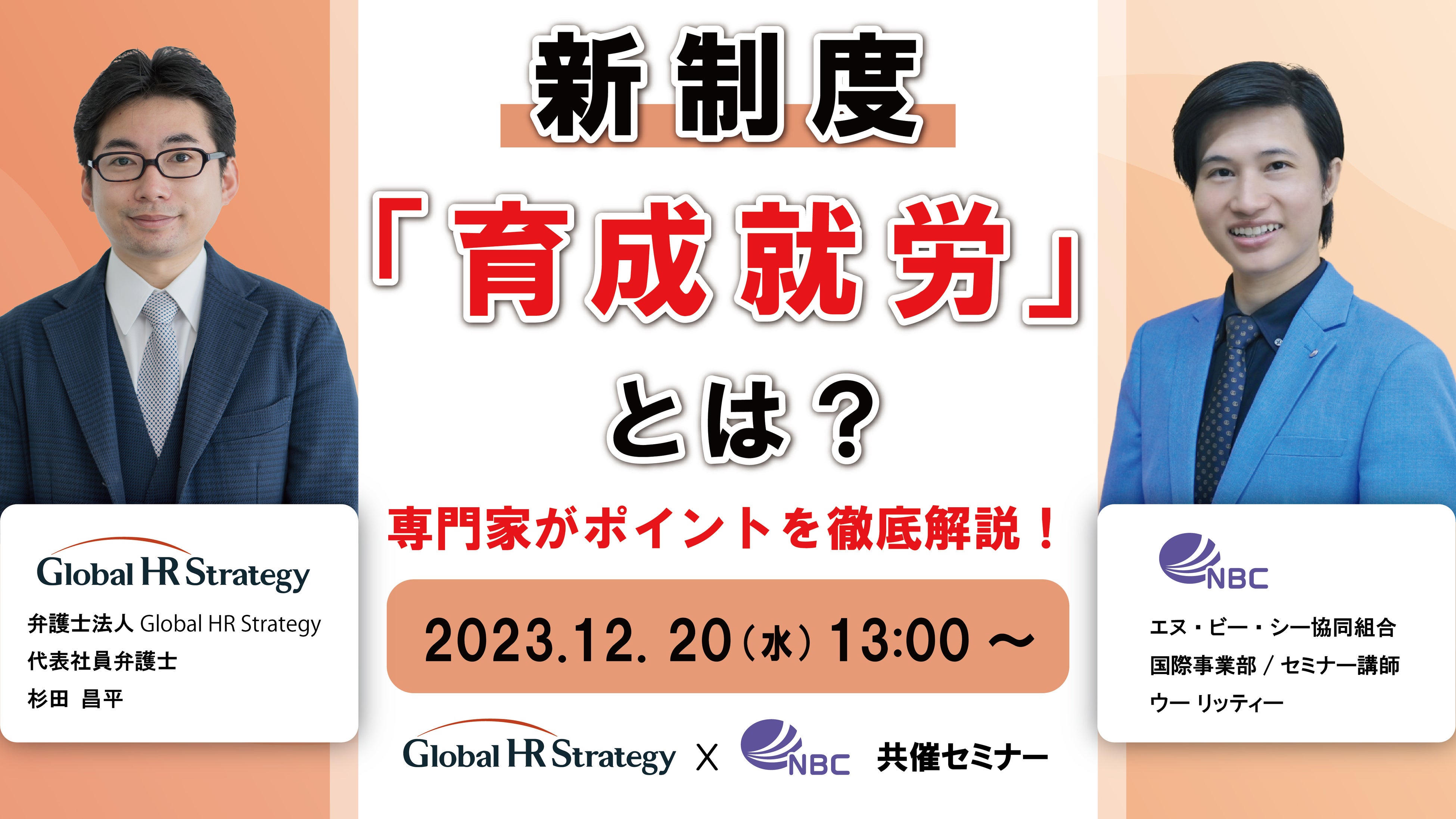 20年以上の受入れ支援実績を誇るエヌ・ビー・シー協同組合と、「外国人雇用のプロ」杉田昌平弁護士による共催セミナー。技能実習制度に代わる新制度の重要なポイント、今後の影響などをわかりやすく解説します。