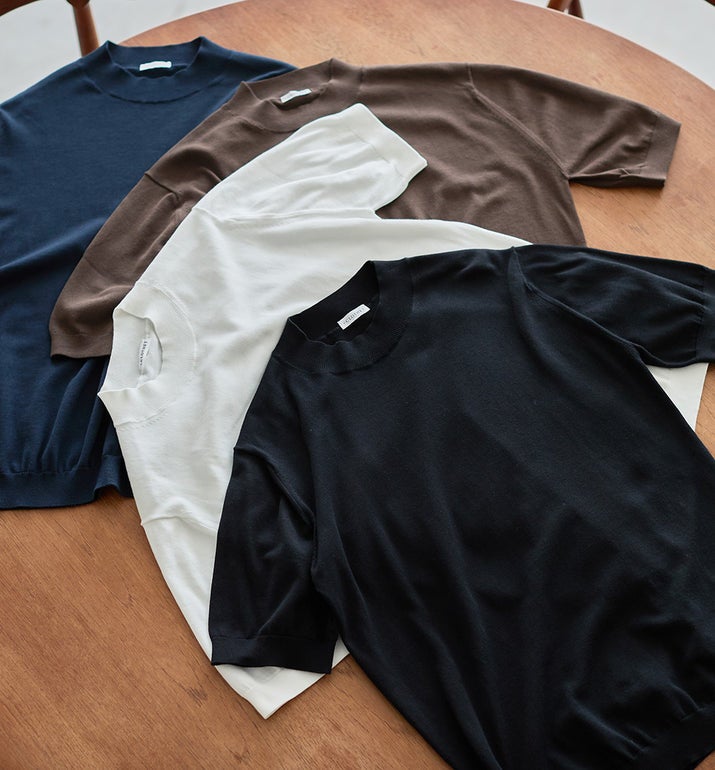 希少原料スビンプラチナムを使用したとろける着心地が人気の半袖ニットコレクションです。