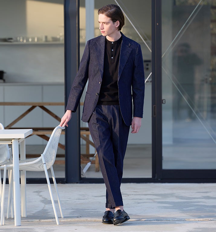 2018年にスタートした<クロスクローゼット>は、150年以上の歴史をもつ⽣地サプライヤーであるスタイレム瀧定大阪株式会社が、業界で活躍している若⼿テーラー監修のもと、原材料の調達から⽣地開発、製造までを⼀貫して⾏うブランド。
