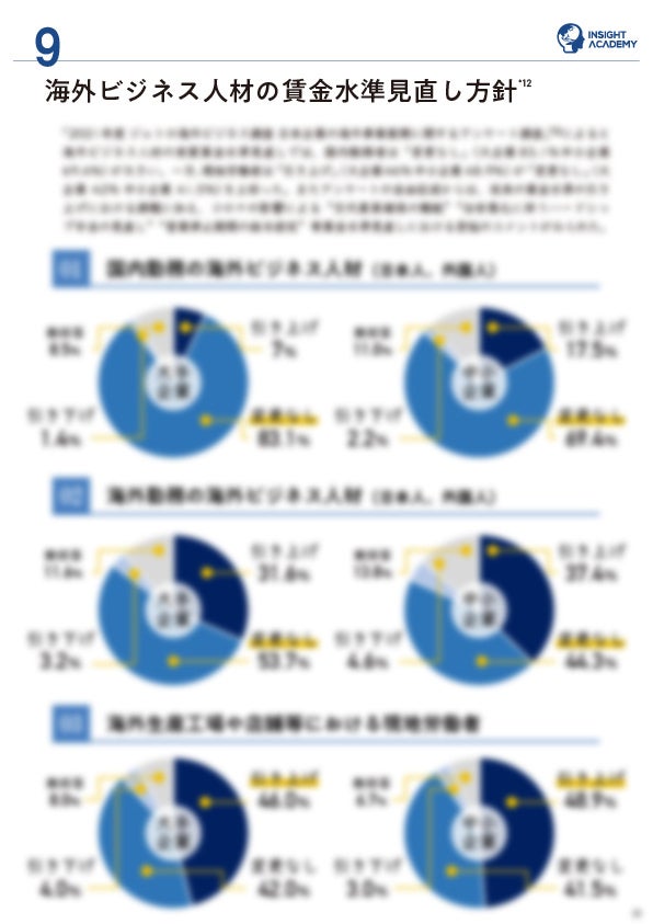 今回は、数字をより新しいものにアップデートするとともに、アフターコロナ時代における海外駐在員への影響や、ポストコロナの企業各社の人材面での海外事業戦略の傾向を盛り込み、グローバル人事担当者や海外事業関連者が求める、より多くの情報を資料化した最新版として公開しております。