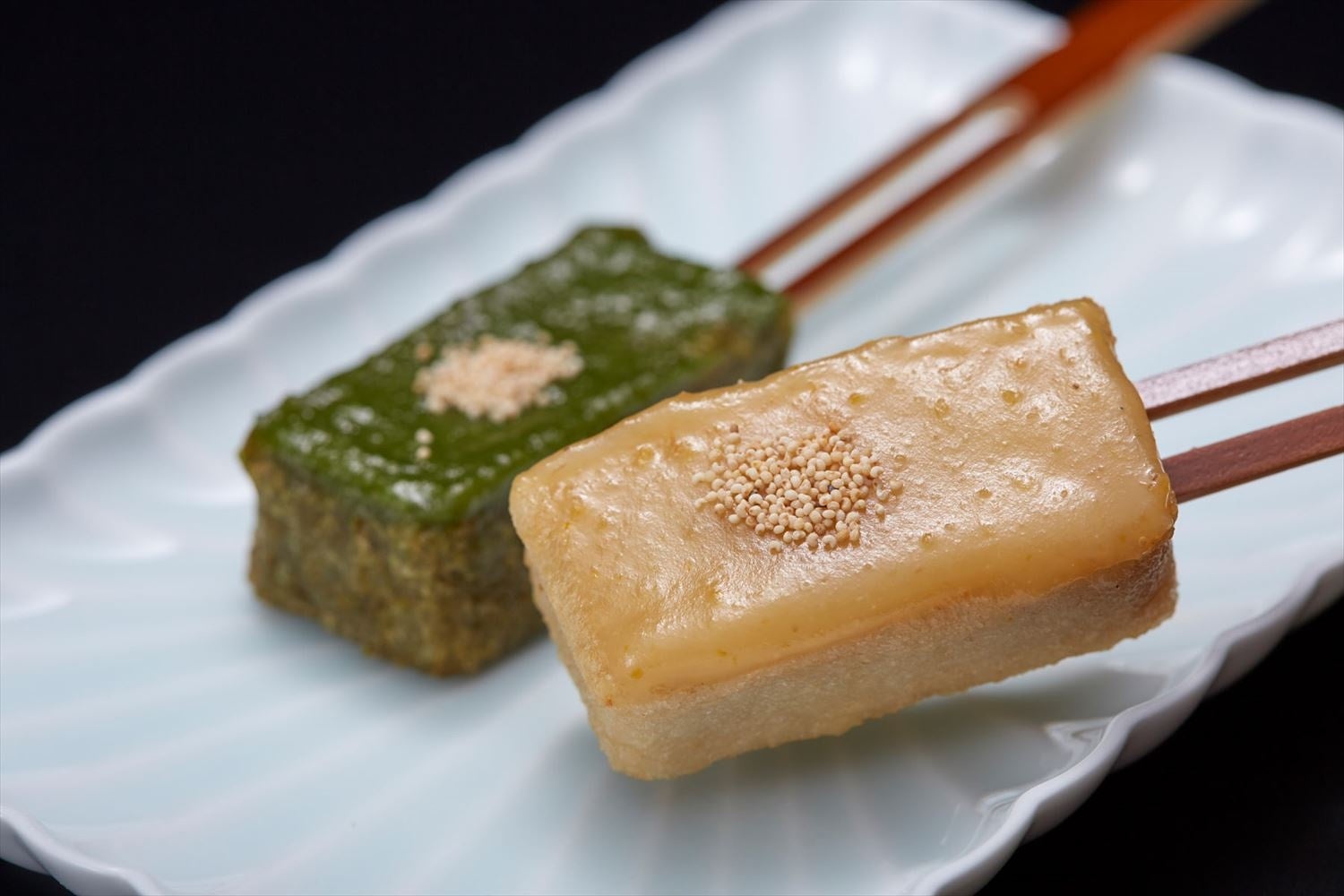 ふわふわモッチリ食感が魅力のよもぎとあわ(雑穀)の生麩です。