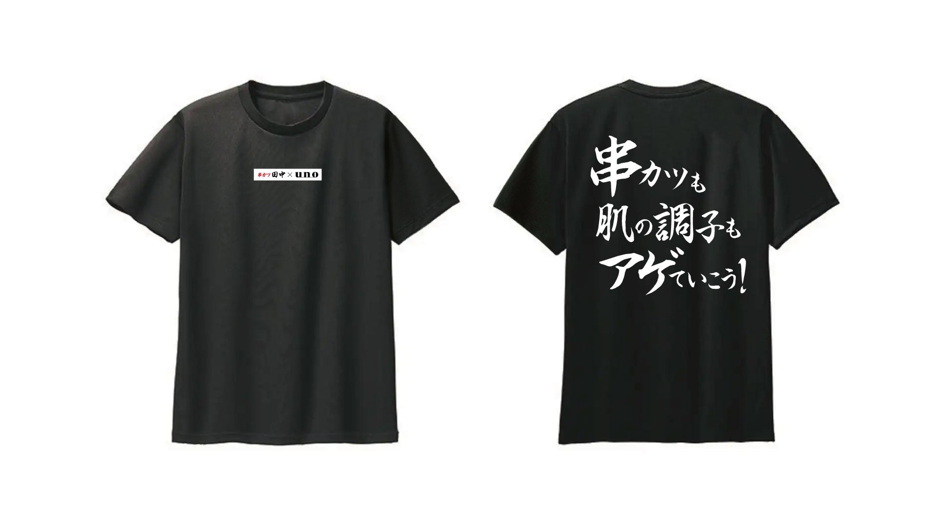 (コラボアイテムの目印は「串カツ田中×uno」と記載があるアイテム)