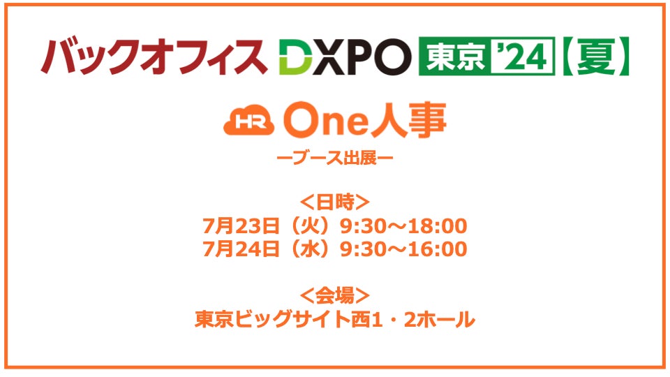 【7/23,24】One人事、「第3回バックオフィスDXPO東京’24夏」に出展