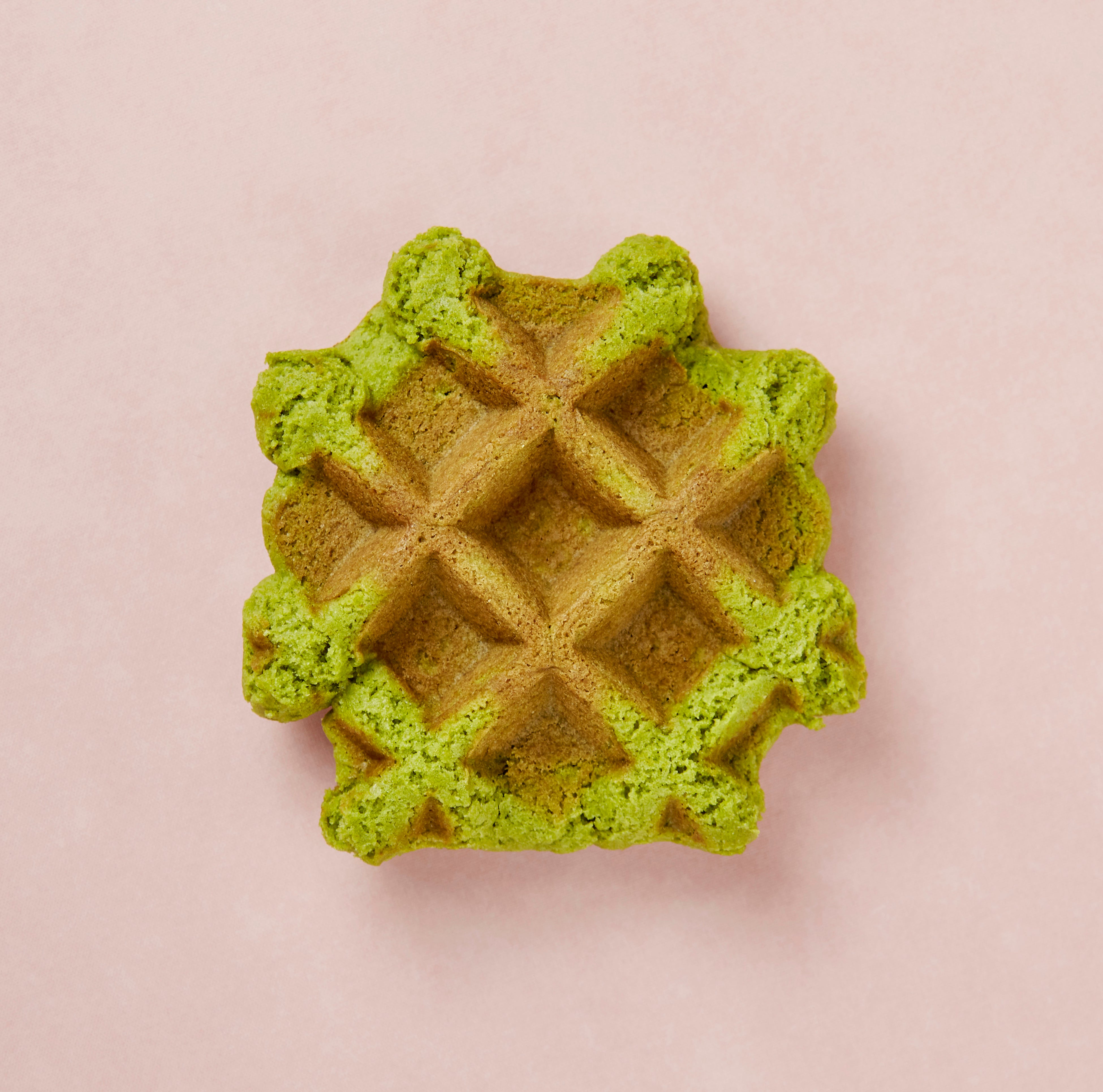 京都宇治抹茶を生地に練り込み、さっくりとした食感に仕上げたソフトビスケット風のワッフルです。