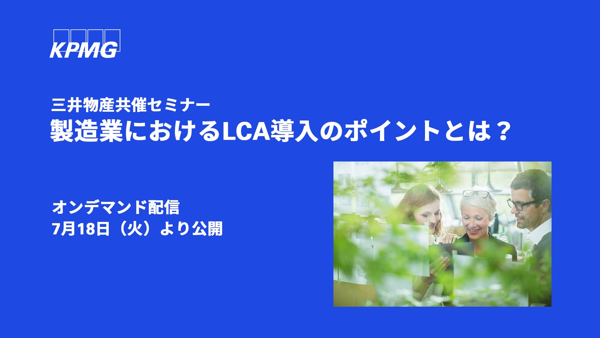 本セミナーでは、精度が高く活用がしやすいLCA算定ツール「LCA Plus」を開発した三井物産株式会社および、企業のサステナビリティ課題をサポートするあずさサステナビリティとともに、LCAについて必ず知っておきたい基礎知識、最新動向、算定方法およびツール、そしてLCAを活用した企業の取組みについて解説します。