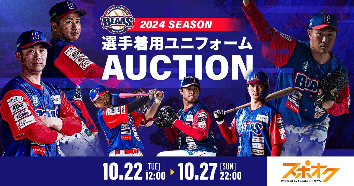 株式会社モバオク(本社:東京都渋谷区、代表取締役社長:生田目 知之、以下モバオク)がエンゲート株式会社(本社:東京都中央区、代表取締役:城⼾ 幸⼀郎、以下エンゲート)と業務提携し提供するスポーツチーム公式オークションサービス「スポオク」にて、プロ野球独立リーグ・ルートインBCリーグに所属の埼玉武蔵ヒートベアーズが実施する「2024年シーズン選手実着用ユニフォーム オークション」を2024年10月22日(火)から開始します。