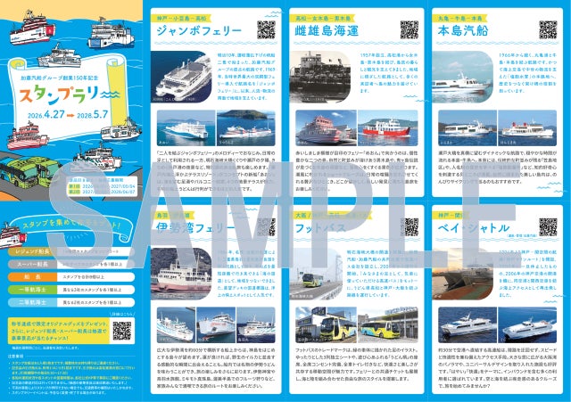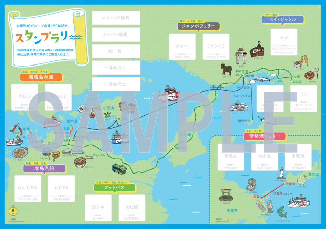 神戸-小豆島-高松を結ぶジャンボフェリー株式会社(本社:神戸市、代表:山神正義)は、加藤汽船グループ創業150年を記念した企画第一弾として、グループ各社と連携した「加藤汽船グループ創業150年記念スタンプラリー」を実施いたします。