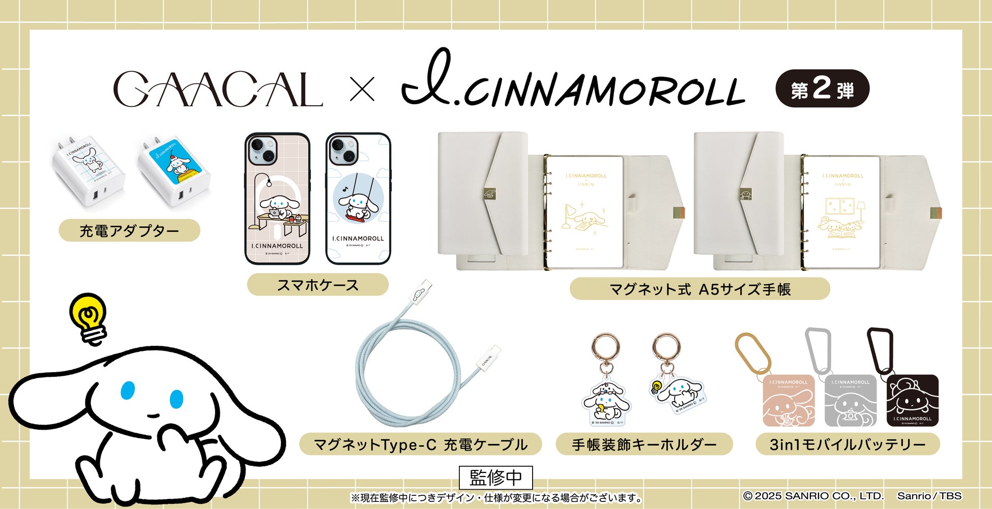 仕事もプライベートも頑張る女子を応援するブランド「GAACAL(ガーカル)」(運営:株式会社rainboww 東京都新宿区、代表取締役CEO 朱静儀)と、ちょっぴり大人なシナモンとして誕生した株式会社サンリオの「シナモロール」の新ブランド「I.CINNAMOROLL(アイシナモロール)」とのコラボグッズ第二弾を本日より予約販売開始いたします。