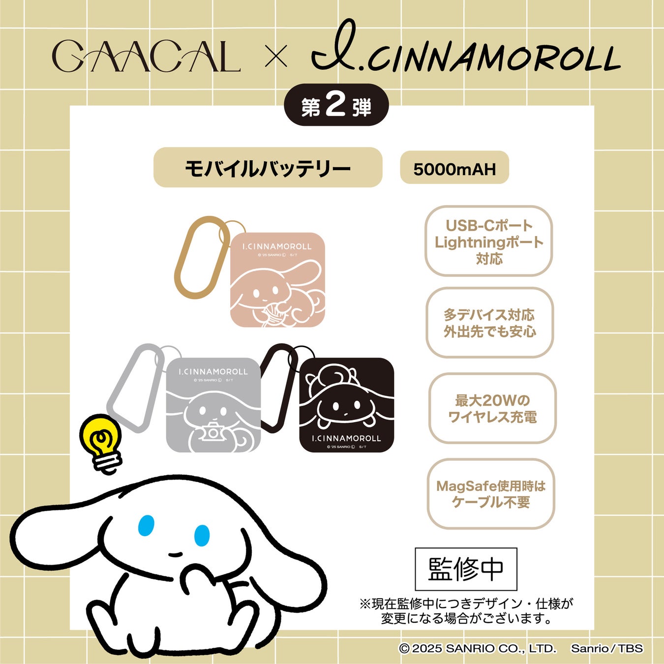 4.GAACAL × アイシナモロール MagSafe対応 3in1モバイルバッテリー(全3種)