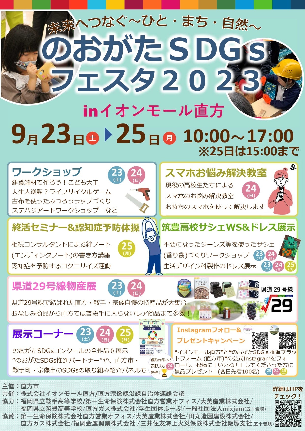 このたび直方市は、“のおがたSDGs推進パートナー”及び直方市のSDGsに関する取り組みを、幅広い世代の方々に知っていただくことを目的に「のおがたSDGsフェスタ2023 in イオンモール直方」を開催します。