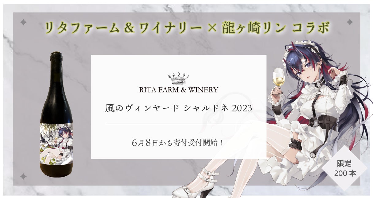 リタファーム&ワイナリー(本社:北海道余市町、以下「リタファーム」)がVtuberの龍ヶ崎リンとコラボし、人気のワイン「風のヴィンヤード シャルドネ2023」を今回限りのオリジナルラベルで北海道余市町からふるさと納税の返礼品として提供いたします。限定200本で、2025年6月8日(日)19時から一ヶ月間寄付を受付ます。寄付は、株式会社あるやうむ(本社:北海道札幌市、代表取締役:畠中博晶、以下「あるやうむ」)が運営する寄付受付サイトで行われます。