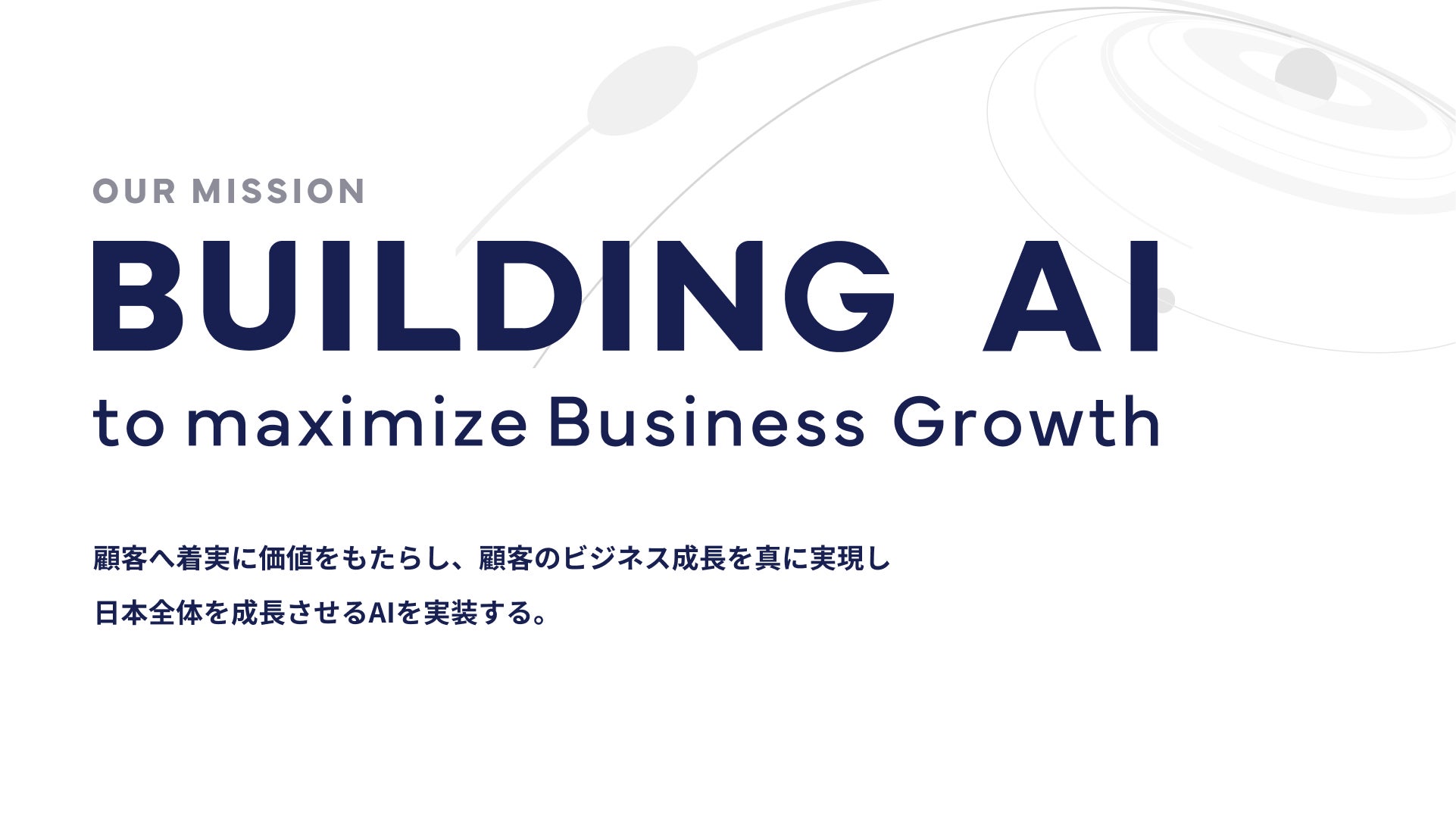 顧客へ着実に価値をもたらし、顧客のビジネス成長を真に実現し、日本全体を成長させるAIを実装する。