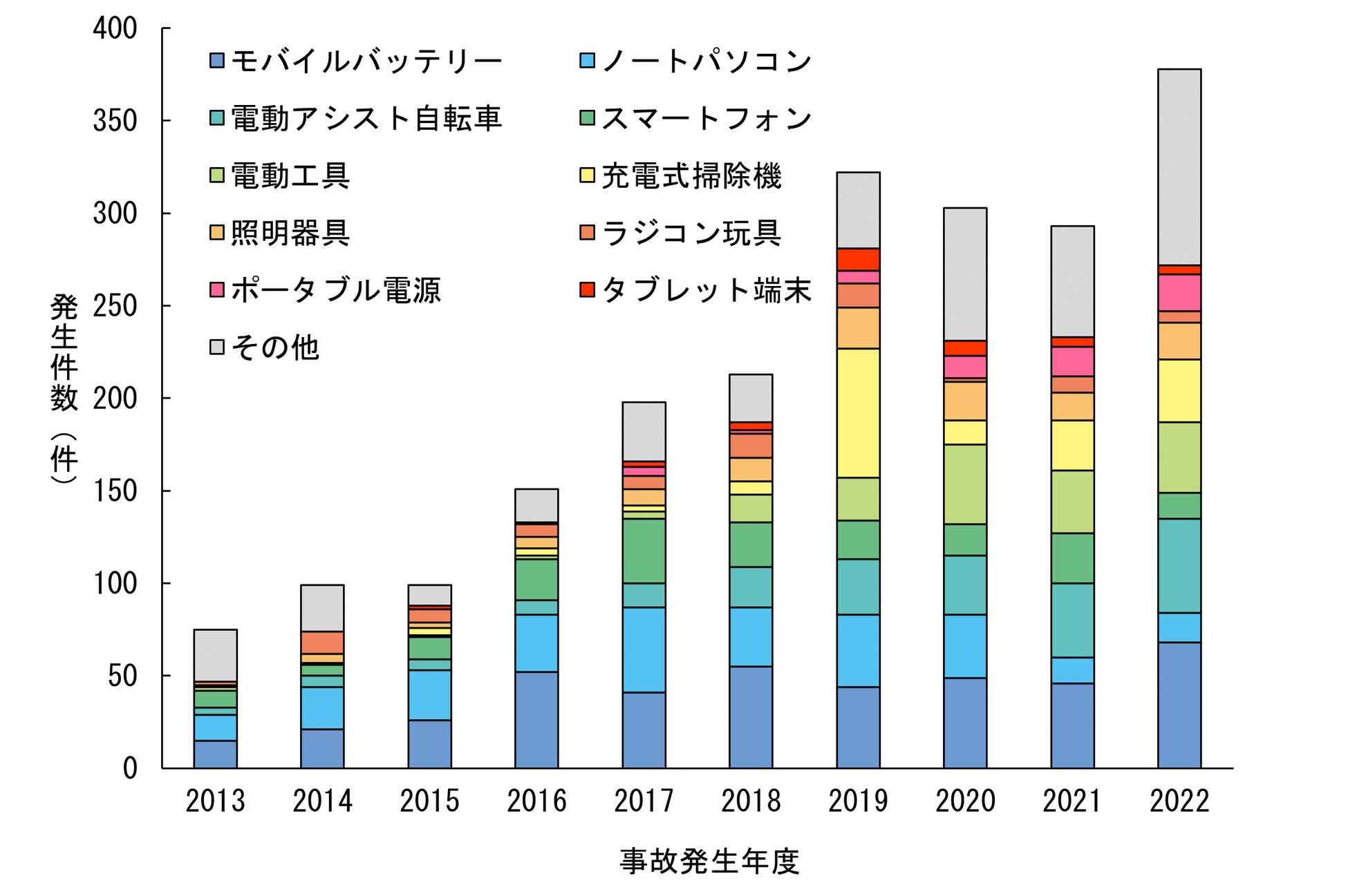 図2 LIB搭載製品の発火懸念事故件数の推移(2013~2022年度)
