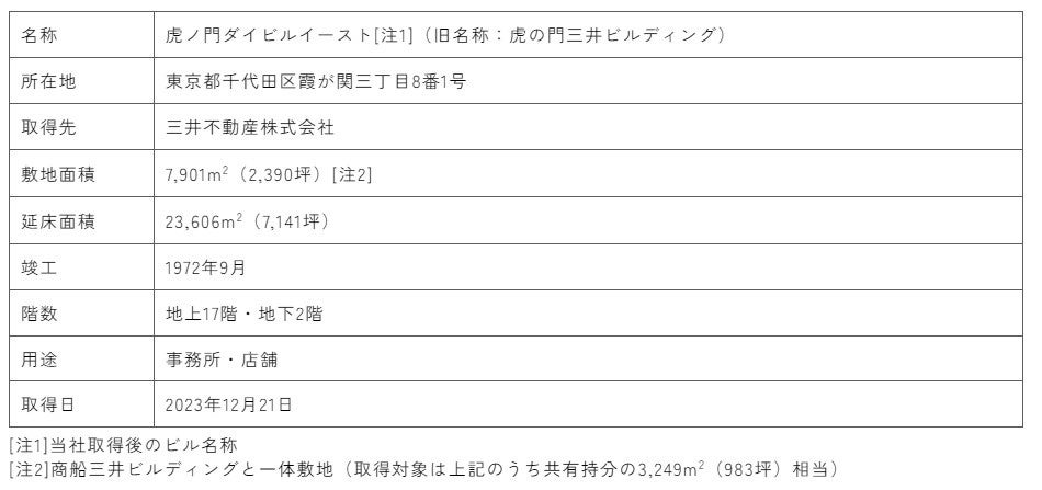 2023年3月27日付 ダイビルが「大手門タワー・ENEOSビル」の一部持分(信託受益権)を取得 https://www.mol.co.jp/pr/2023/23039.html