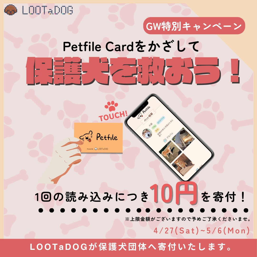 ゴールデンウィーク期間中限定で、Petfile Cardを活用した寄付キャンペーンを開催いたしました。