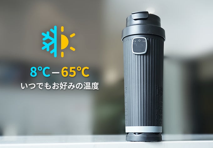 8℃から65℃まで温度調節!いつでもお好みの温度で飲み物を楽しめる冷却・加熱カップ