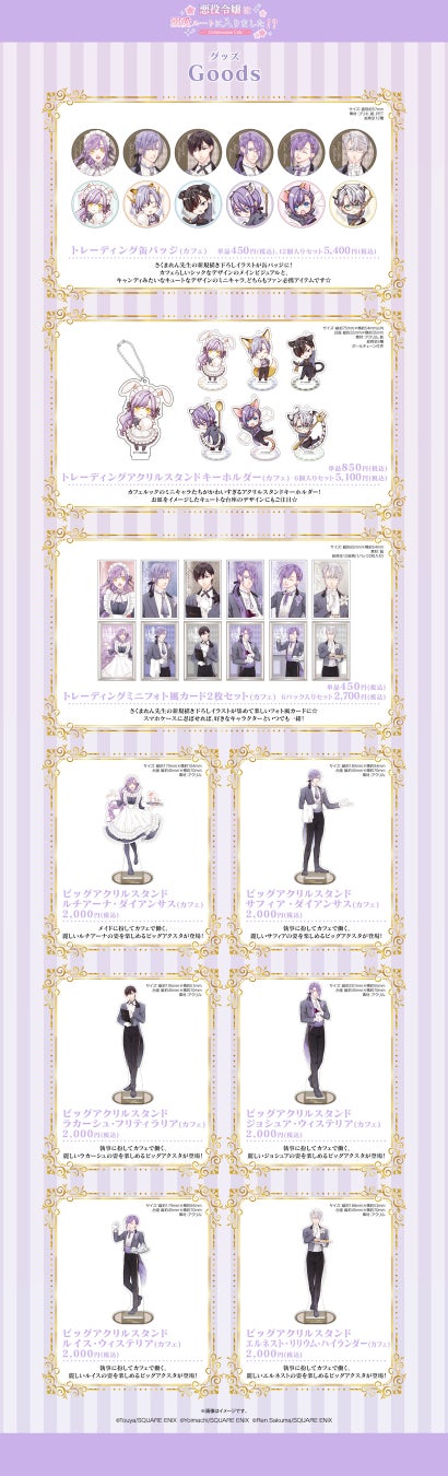 「溺愛ルートカフェ」で販売されるグッズラインナップをご紹介いたします。