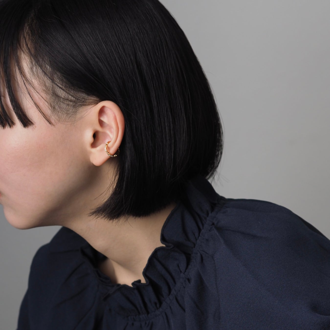 人気シリーズ「ミルゴシック」のイヤーカフが、コンパクトな新サイズで初登場。華やかな装飾性はそのままに、より軽やかで耳元に馴染みやすいデザインに仕上げました。既存のイヤリングやピアスと重ねて楽しんでいただくのもおすすめです。