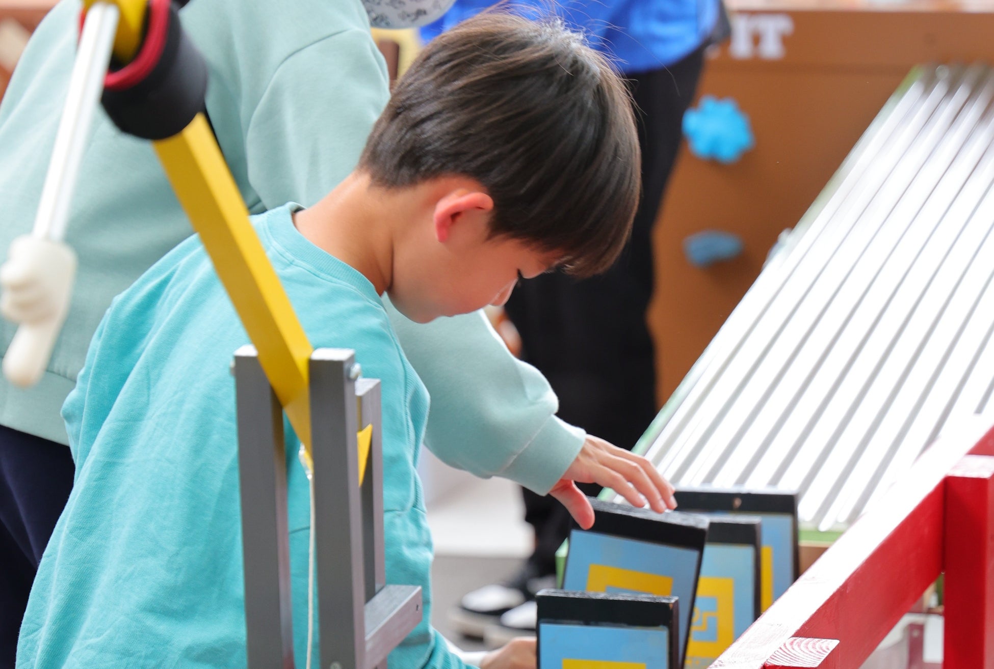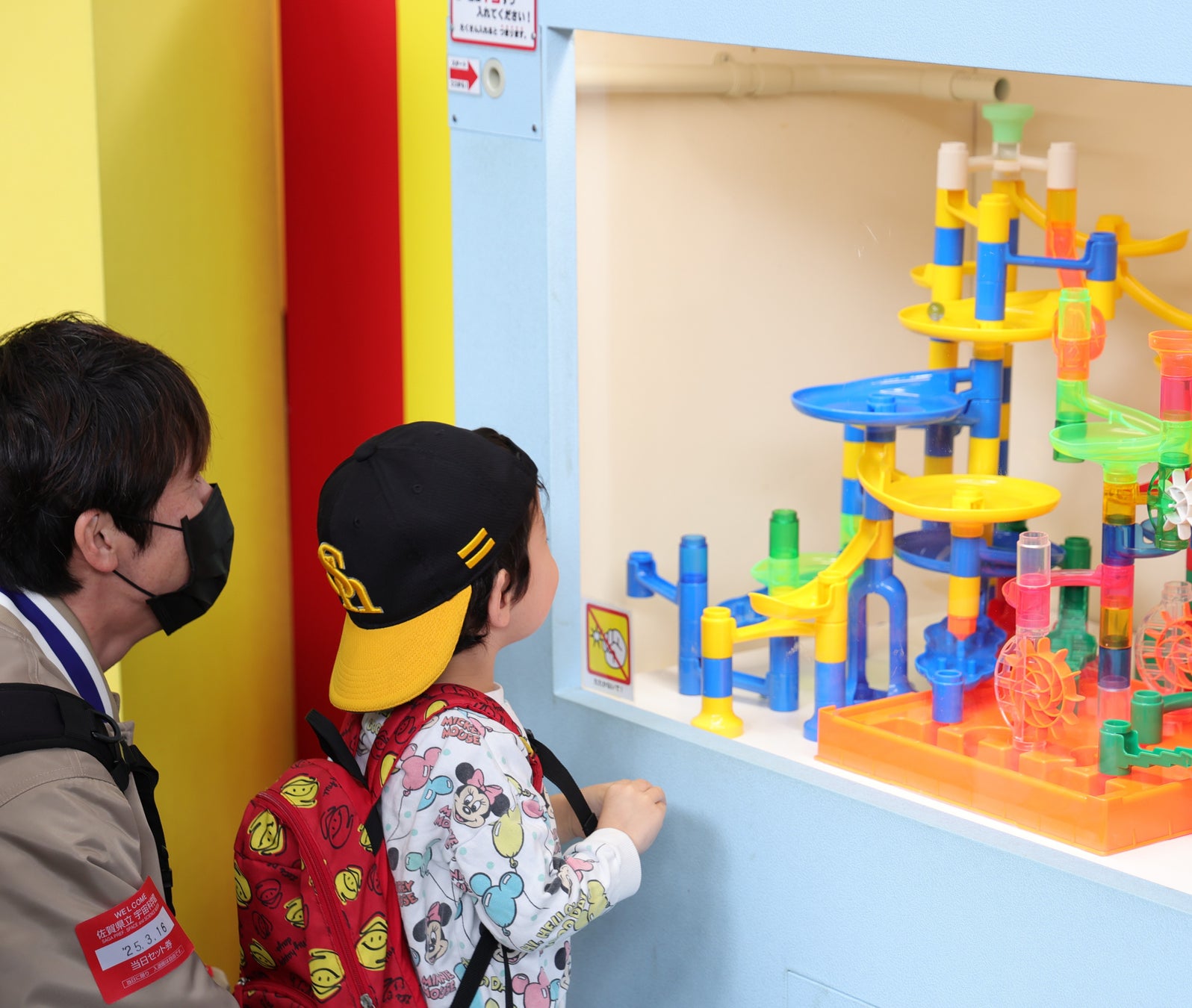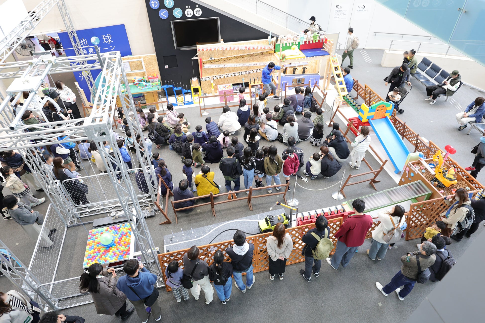 昨年に続き全長20m超の大型コロコロ装置も新たに制作。小さなビー玉がこの大型装置を動かします。