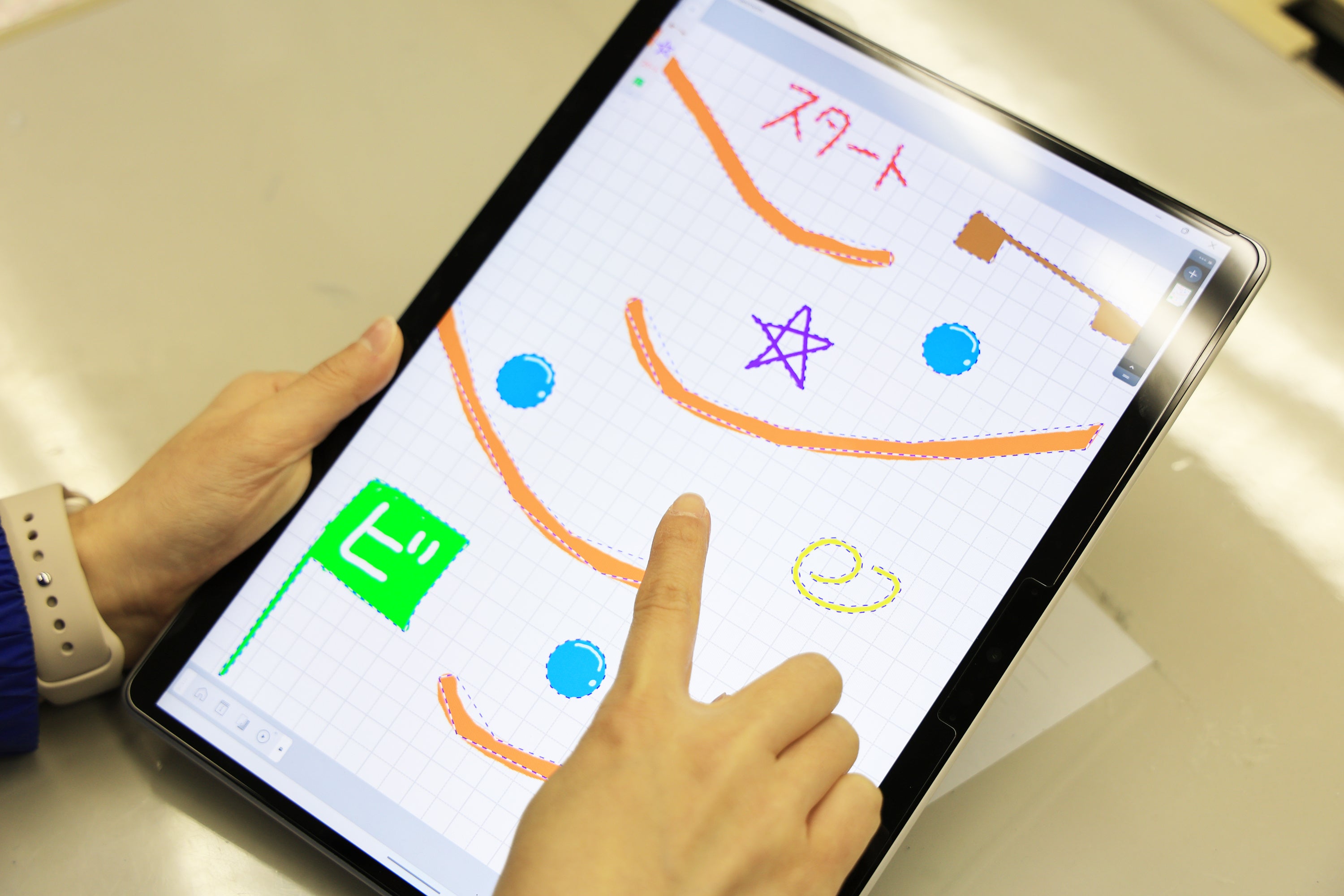 「Springin'(スプリンギン)」の体験会を実施します。デジタルでビーコロを作ってみることができます。自由な発想でビー玉を転がす装置をデジタルでつくってみてください。