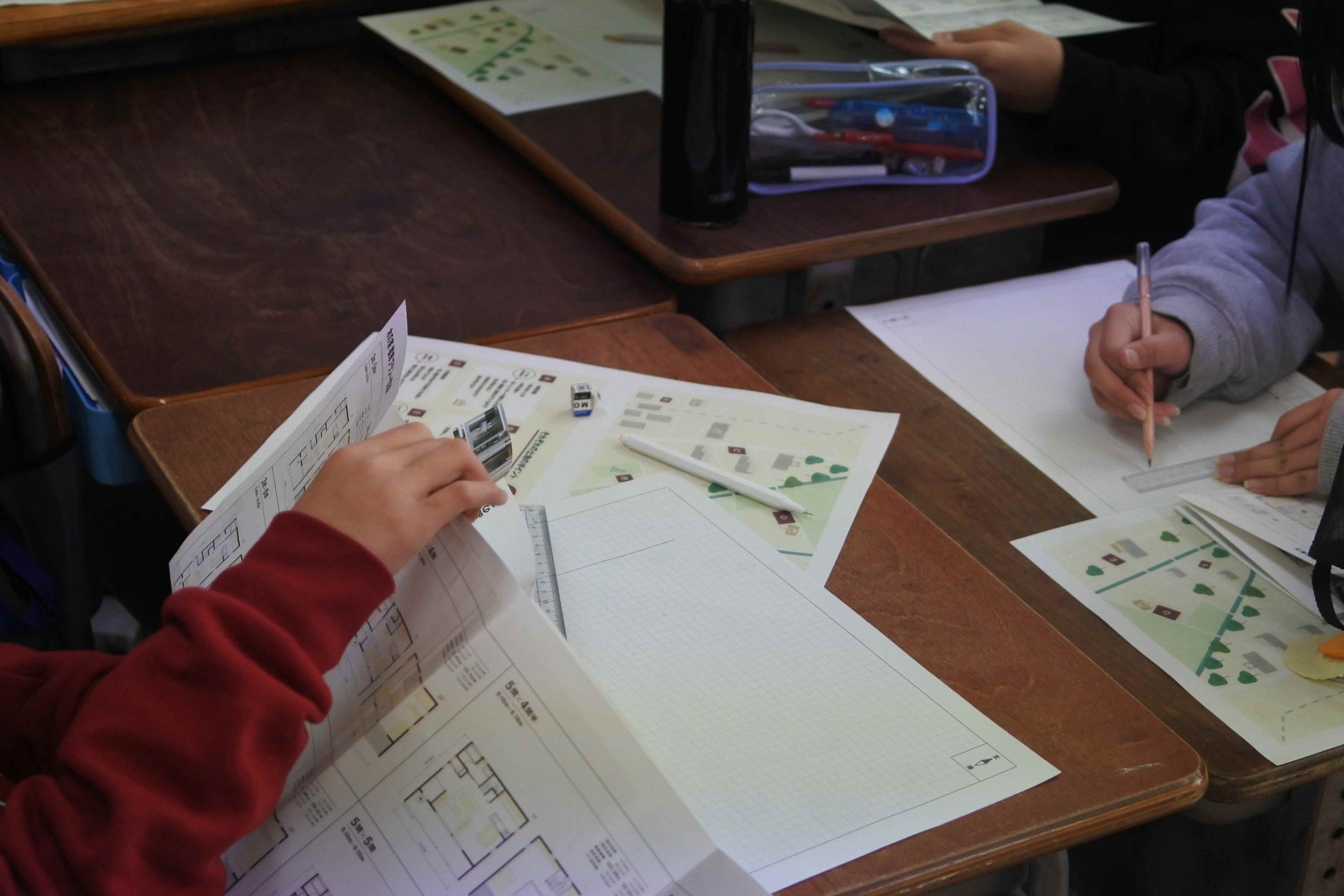 3.「1」と「2」で体験した内容を踏まえて、自分の理想の住まいについて、実際に間取りを作成していただきました。作成した間取りは授業内で発表、共有することで「住まい」について学んでいただきました。