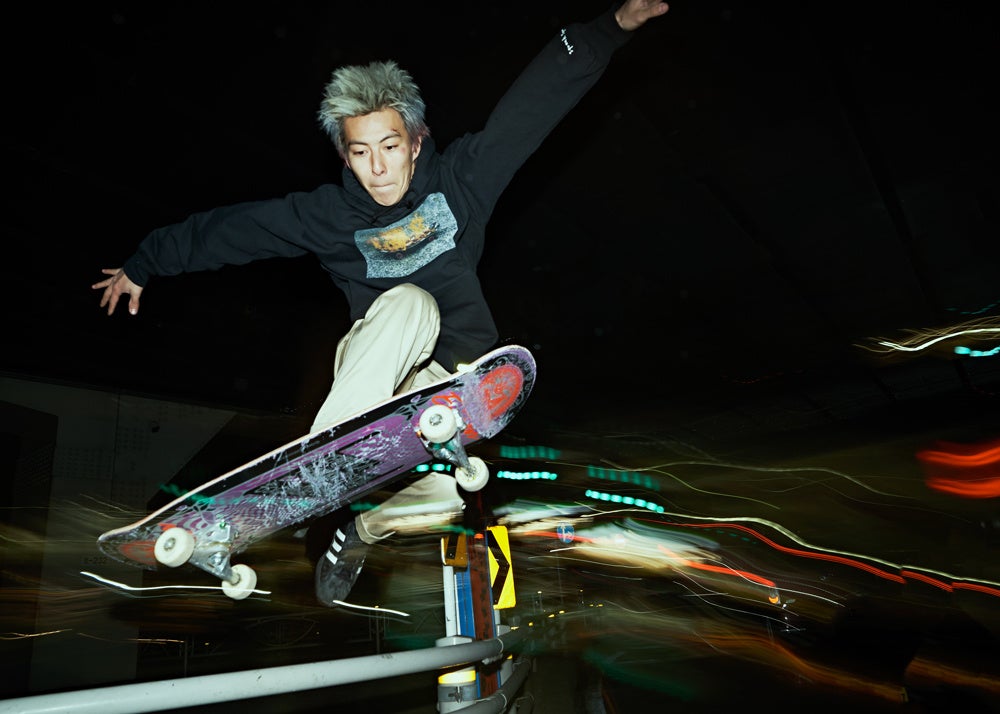 15歳で上京後、東京のストリートを拠点に滑走するスケーター。撮影・編集・配信をすべてiPhoneで行う『apple』や『Pokett Patroll』の活動で多くの注目を集め、Evisen Skateboardsに加入。東京五輪閉会式でのパフォーマンスも記憶に新しい。