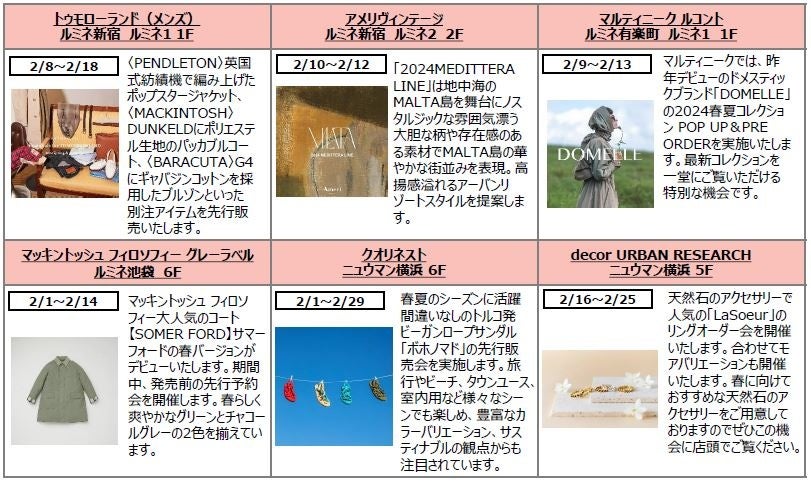 人気ブランドディレクター来店イベントや、春ファッションを先取りする先行受注会・POP UPを実施<SS新商品展開強化期間:2月1日(木)~3月6日(水)>