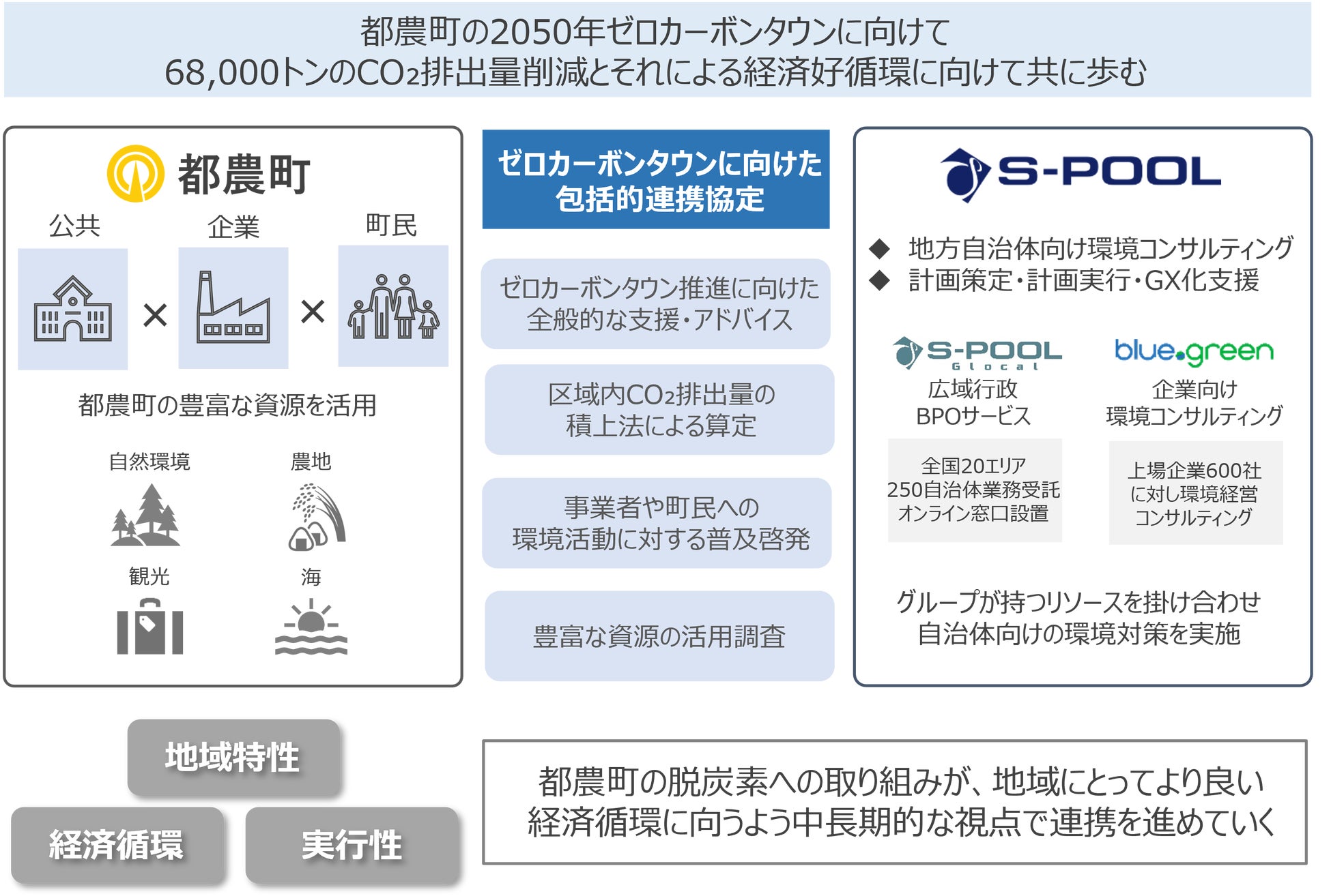 株式会社エスプール(本社:東京都千代田区/代表取締役会長兼社長:浦上 壮平/以下、「当社」)は、宮崎県都農町(町長:坂田 広亮)と包括的連携協定を締結し、同町の地域資源を活用したゼロカーボンタウンへの取り組みを開始することとなりました。