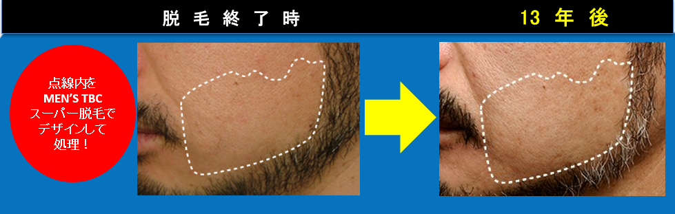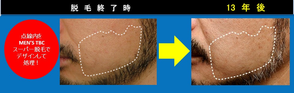 また、高い効果が人気の「MEN’S TBCスーパー脱毛」ではコース終了から13年経っても生えてきていない記録を更新中です。