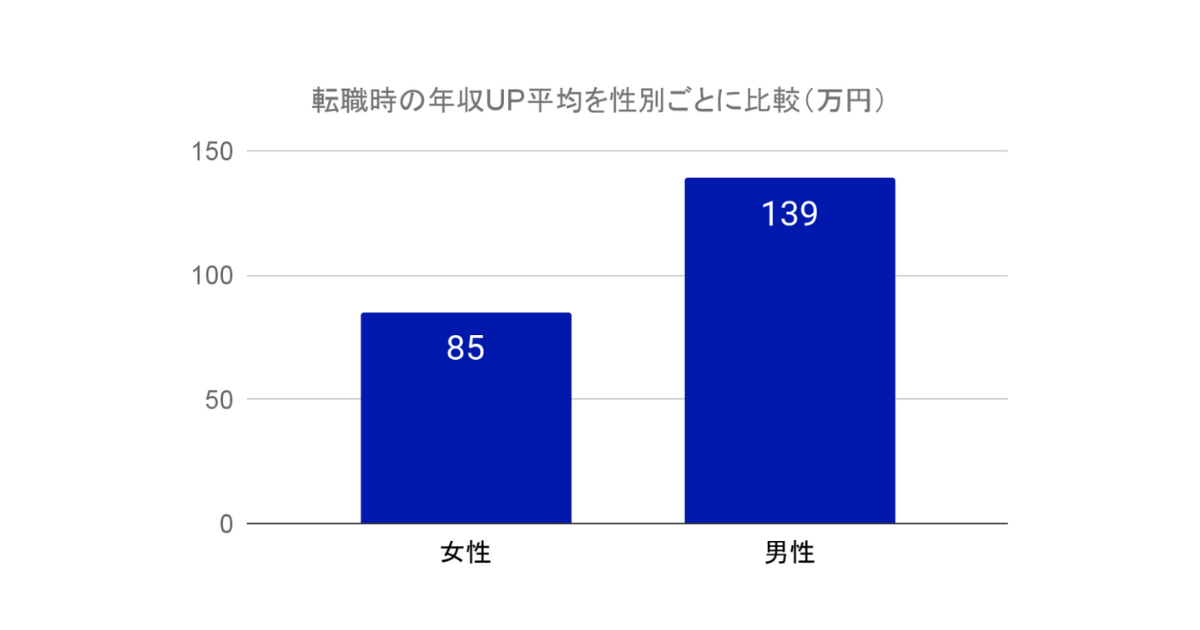・男性は転職時に平均139万円の昇給を実現(中央値:100万円)