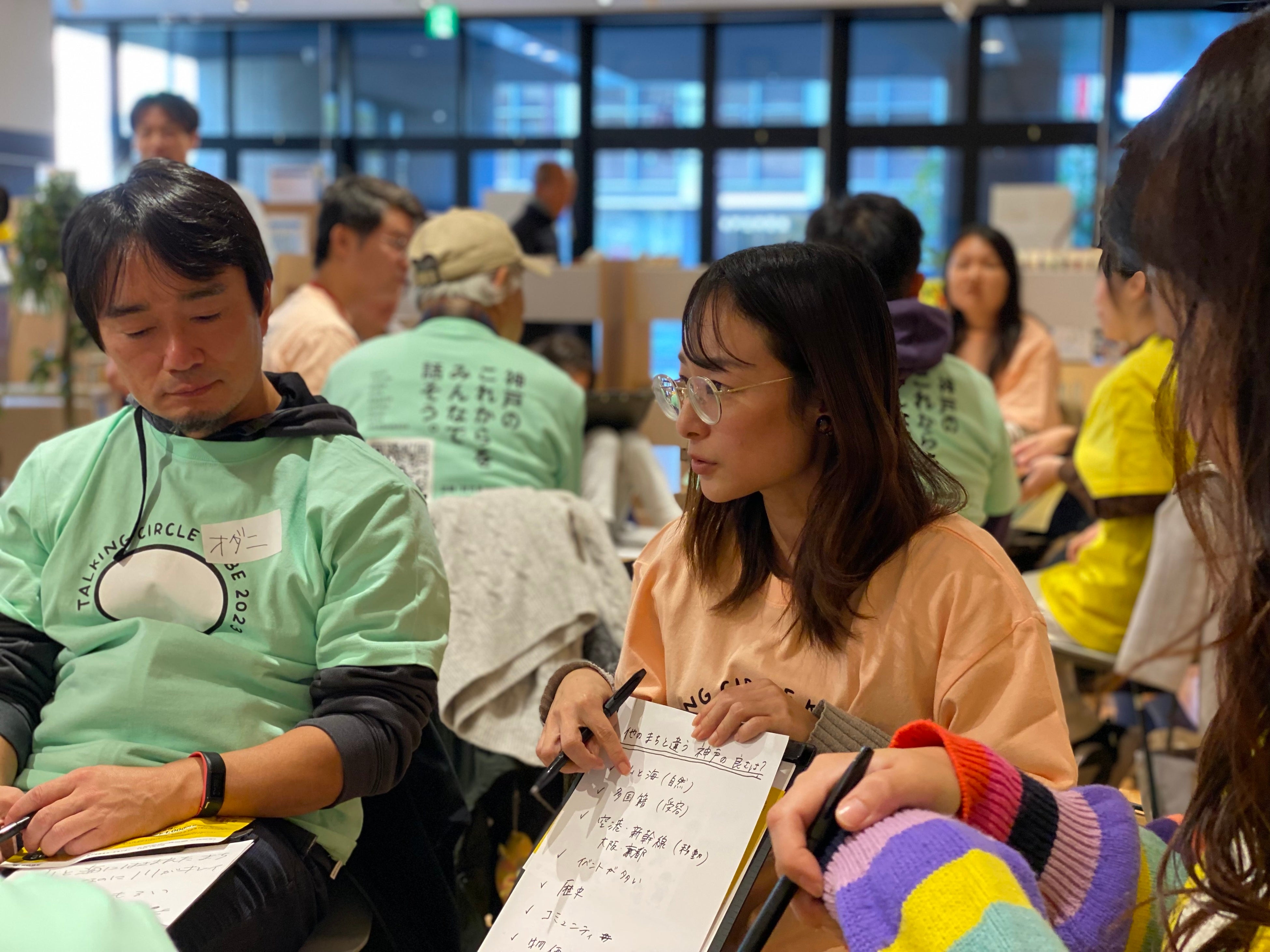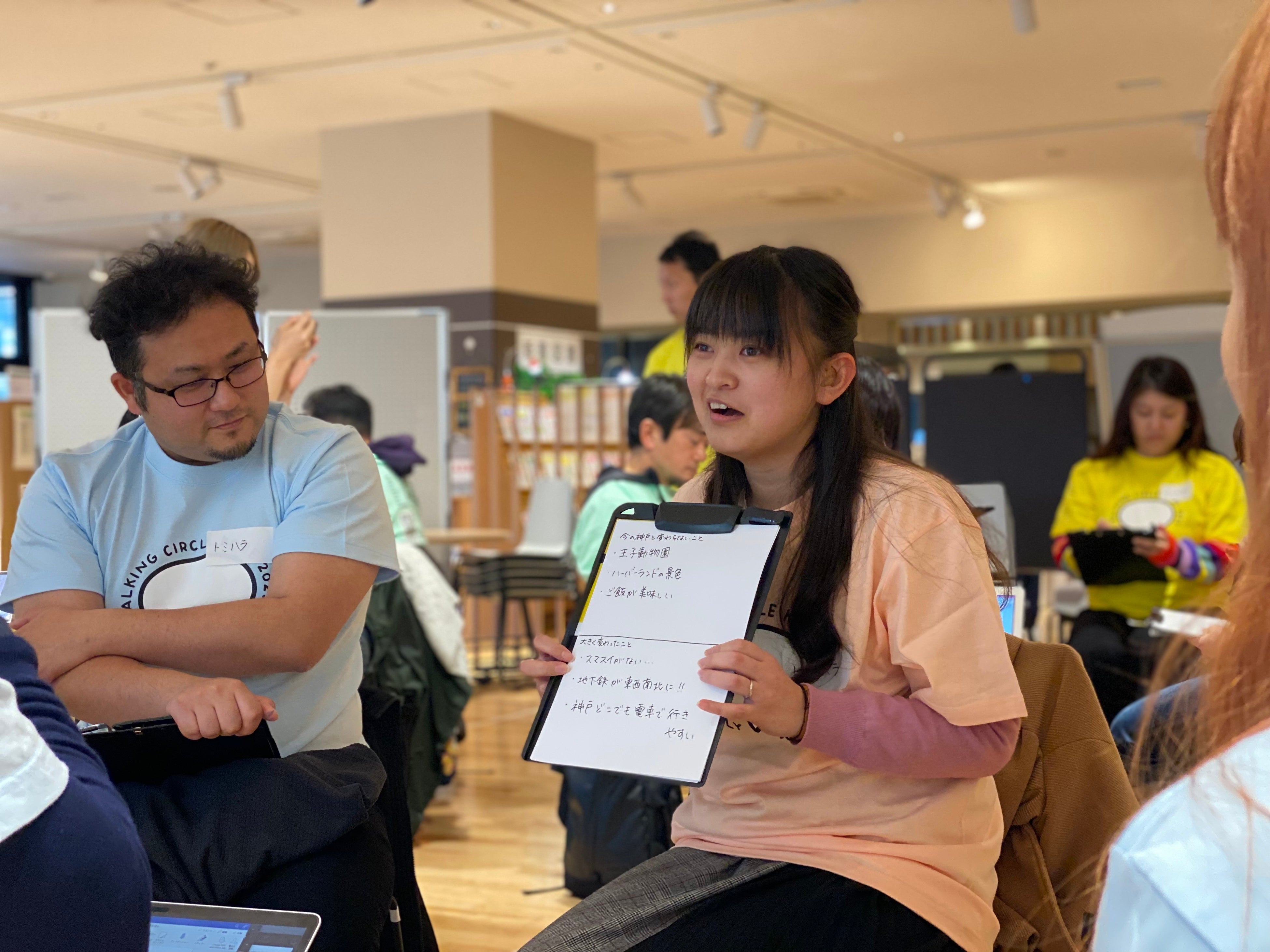 神戸市が今後進むべき方向性を示す「総合基本計画」を30数年ぶりに刷新するにあたって、そのベースとなる“まちの基本理念”ともいうべき「基本構想」づくりに向け、市民が思いを自由に語り合うワークショップ「TALKING CIRCLE KOBE(トーキングサークルコウベ)2023」が11月18日、神戸市長田区の新長田合同庁舎一階の兵庫県立神戸生活創造センターで開かれました。