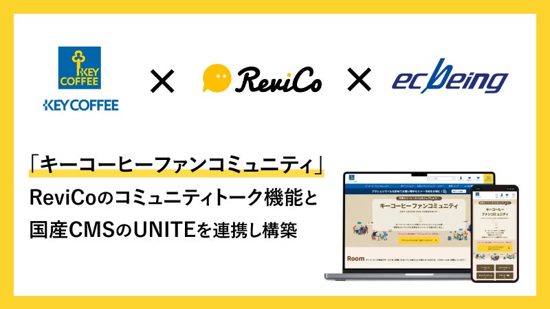 株式会社ecbeing (イーシービーイング 本社:東京都渋谷区、代表取締役社長:林 雅也、以下「弊社」)は、国産のメディアコマースCMSである「UNITE」と、弊社子会社である株式会社ReviCo(本社:東京都渋谷区、代表取締役:高橋 直樹、以下、ReviCo)が提供するレビューマーケティングプラットフォーム「ReviCo」の連携により、キーコーヒー株式会社(本社:東京都港区、代表取締役社長:柴田 裕、以下、キーコーヒー)のコーポレートサイト内に、「キーコーヒーファンコミュニティ」を構築し、コーヒーライフに役立つ動画やトピックスなどの発信による、ファン同士のコミュニケーション促進を実現するための環境の提供を開始したことをお知らせいたします。