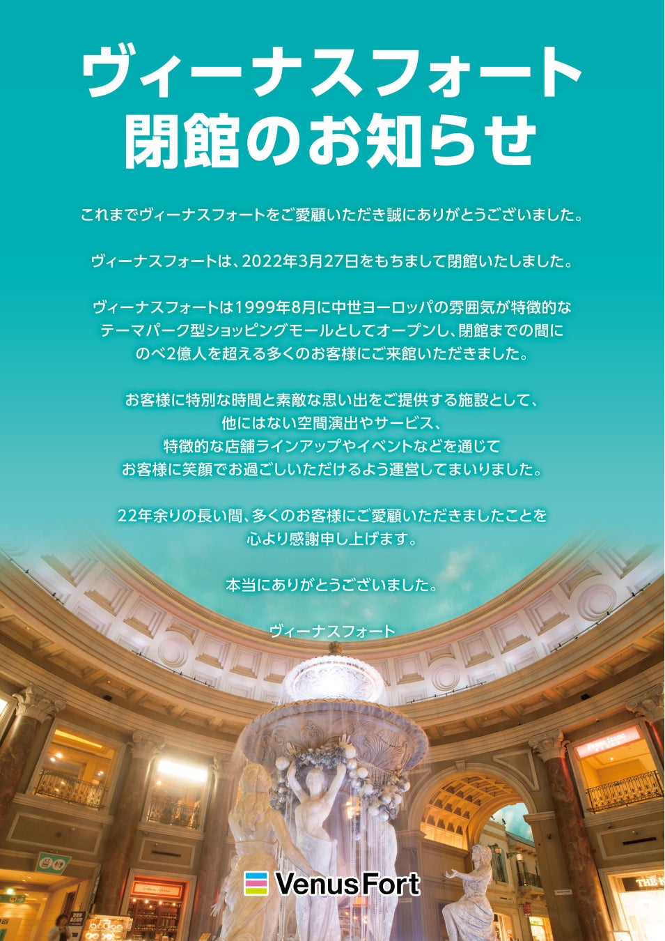 | 22年間の歴史に幕 ヴィーナスフォート フィナーレセレモニー |
