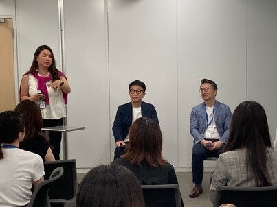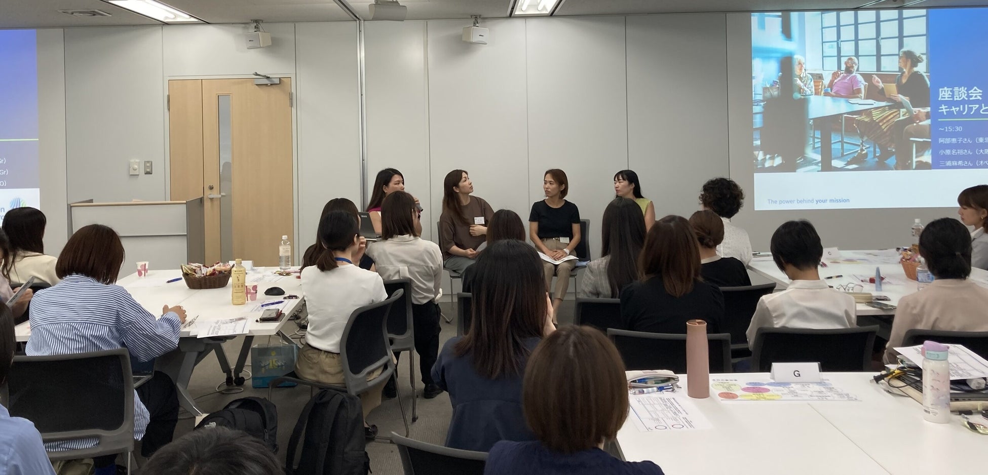 結婚や出産といったライフイベントと現場エンジニア職の両立や、トイレや更衣室などの現場の衛生環境に関する女性特有の悩みについて、実際に結婚や出産、産休・育休取得を経験した3名の先輩社員による座談会を実施しました。キャリア形成の道のりや当時の悩み、どのように克服したかについての生の声を聞いた参加者からは「経験談から具体的な未来像を描けるようになりました」「ライフステージの変化に伴う漠然とした不安が軽くなりました」などの声が聞かれました。