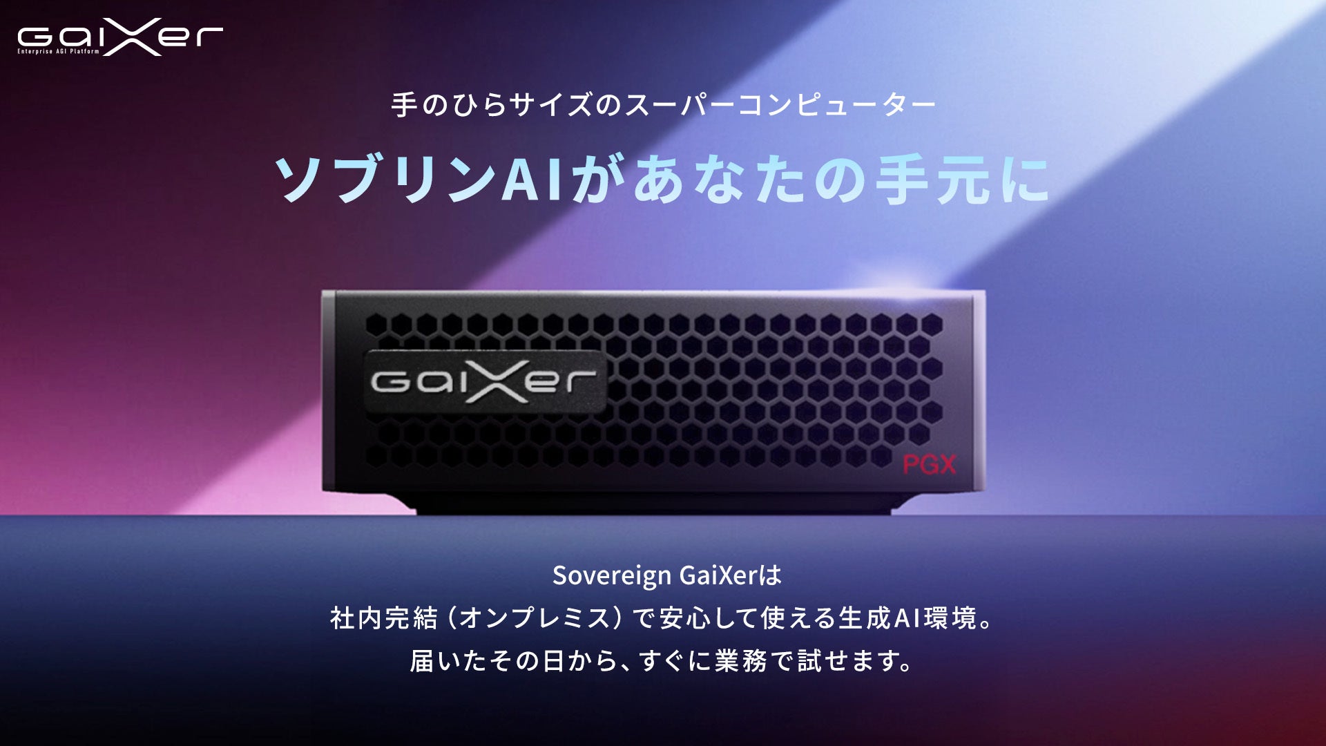 国内向け生成AI基盤「Sovereign GaiXer」正式受注開始のお知らせ ~手のひらサイズのスパコンで生成AIを。機密性とデータ主権を守るオンプレミス型生成AIソリューション~