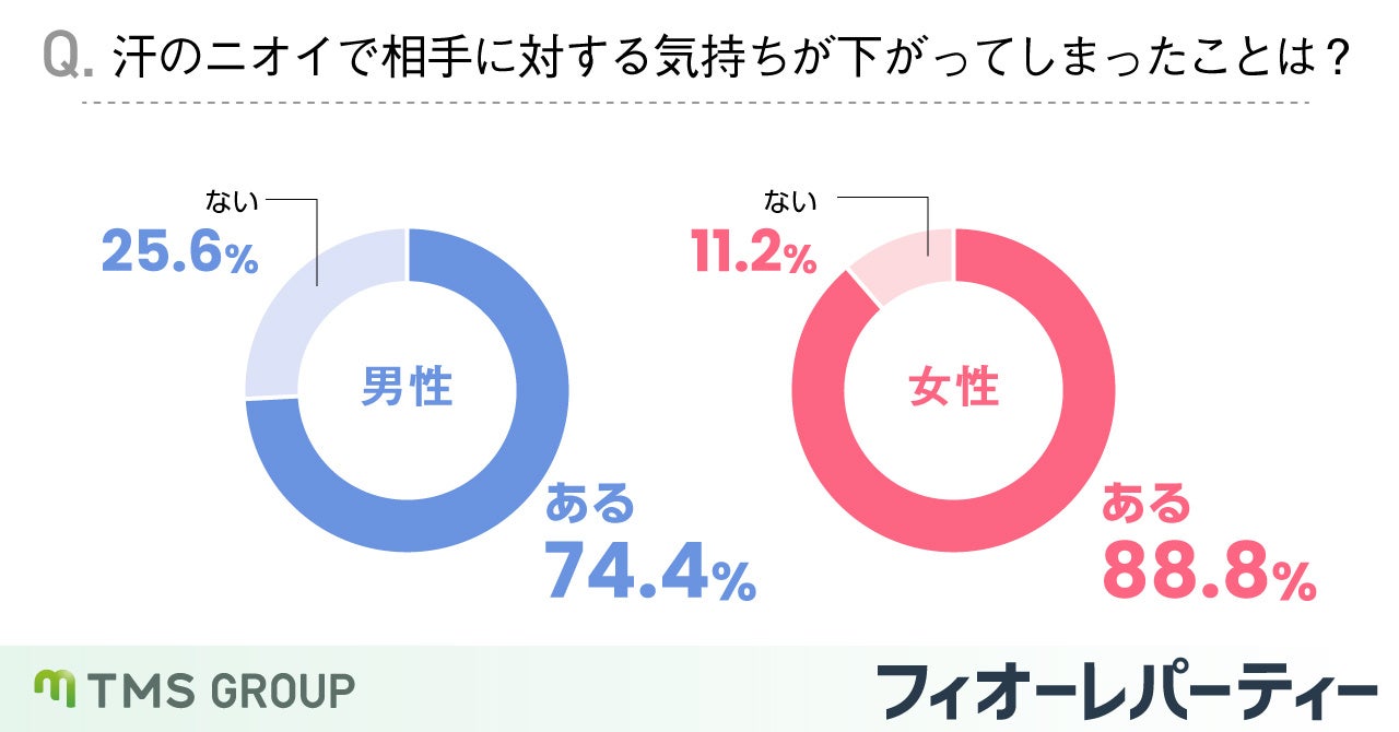 TMSグループが運営する「フィオーレパーティー(https://www.fiore-party.com/)」は、婚活中の男女を対象に、汗のニオイに関するアンケート調査を実施いたしました。