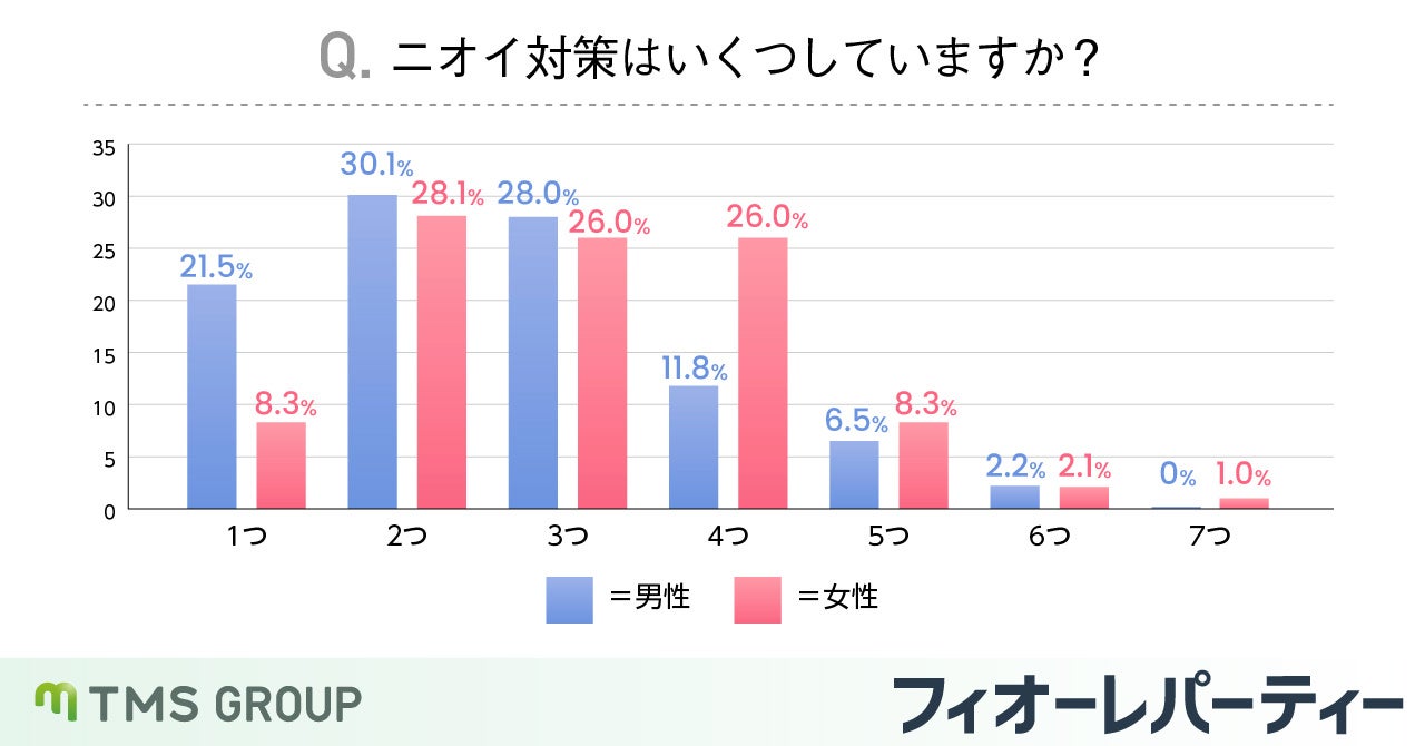 やはり女性の方がニオイに対して敏感なので、男性も最低でも3つ以上対策した方がよかもしれません。